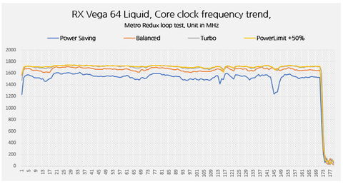 Az orajeleknek pedig az latszik hogy nem veletlen van a base es a boost megadva, azokon grafikonokon is inkabb a hivatalos boost clock latszik (1546Mhz es 1677Mhz) mint a max boost (1630Mhz es 1750hz).