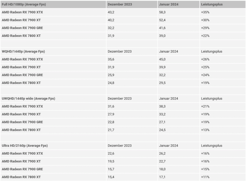 Átlag FPS-ben van köztük 8,5% az 1%-os FPS-ben meg 6% a 7900XT javára 2K-ban, 4K felbontáson ugyanezek az értékek 6% és 10% különbség a 7900XT javára.