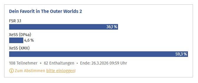 Nincs itt semmiféle szabotázs, a táblázatban szerepelnek a helyezések, ami a stáb, illetve a tesztelő/író véleményét tükrözi, a szavazások pedig azt mutatják, hogy az olvasóknak melyik tetszik a legjobban. Itt azért nem árt észben tartani, hogy ez nem vakteszt volt, így a szavazás nem annyira releváns, mint egy vakteszten, mert vannak olyan felhasználók is, akik akkor is az FSR-t jelölik be, amikor az láthatóan rosszabb minőséget ad. A legjobb az lenne, ha FSR 3.1 vs. XeSS témában is készülne egy vakteszt, mint a fejlett felskálázók esetén, ki tudja, talán egyszer lesz olyan is. -