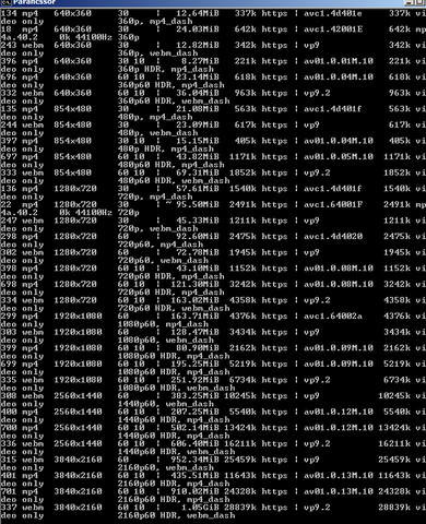 Látható, hogy 4 féle kodekkel megy a 4K. Igaz a webm-nél a legmagasabb a bitráta, mégis az mp4_dash-nek jobb minőségűnek kellene lennie (utolsó előtti) mert azok AVC kódolásúak (ez az eredeti nyers anyag is gyanítom).