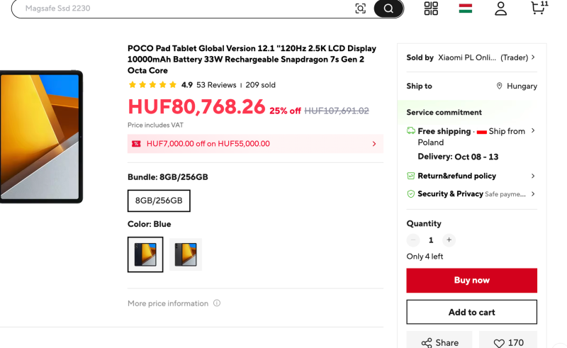8/256-os verzióból olcsóbb a Poco Pad: [link] -