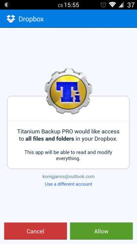 Nekem is ezt adja ki, de megnyomom az Allow gombot, majd bejelentkezek a fiókba és már tölti is fel az adatokat....