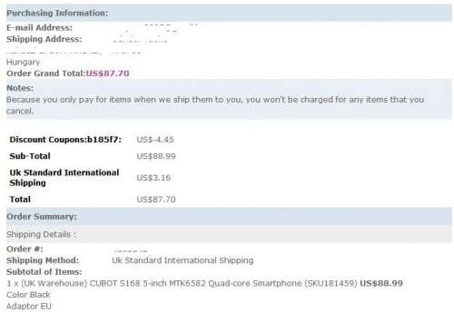 OK. Semmi gond. Ma reggel megrendeltem a Cubot s168-at. Végül a költségkeret is befolyásolta a típusválasztást, így megmaradt az eredeti elképzelés (87,7$ lett végül EU-s szállítással).