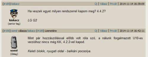Az "ígéretek szerint" - valóban, és nem akarok kötekedni, de abban hiszek, ami már megjött. Samsungokon edződtem, ott az öndícséret volt büdös - LG-t szidták, most, hogy LG-m van, látom, hogy ÖMLIK RÁ az új verzó - már a LOLLIPOP is kint van az XDA-n....