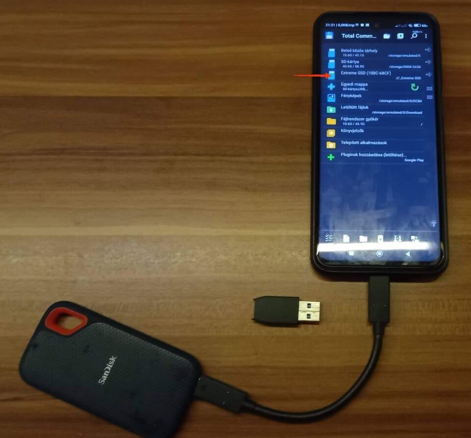 De, ha már közéjük csatlakoztatok egy USB - USB type C - OTG adaptert, akkor már működik a dolog.Mit old meg ez az adapter, amit az SSD saját vezetéke nem tud? Hiszen telefonnal tudja anélkül is!