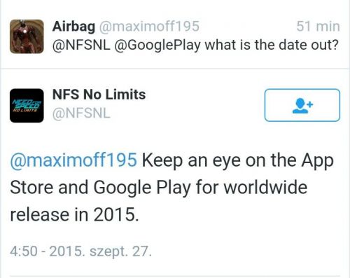 Ti honnan szedtetek az nfs no limits-et? Play-en annyit ir, hogy soon, az apk-t letoltve meg kozli a telo, hogy, bocs de nem installalom, mert nem vetted meg.(az ingyenes jatekot..