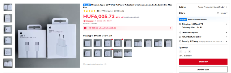 Húgom megkért vegyek neki töltőt és kábelt az iPhone 15-höz.
