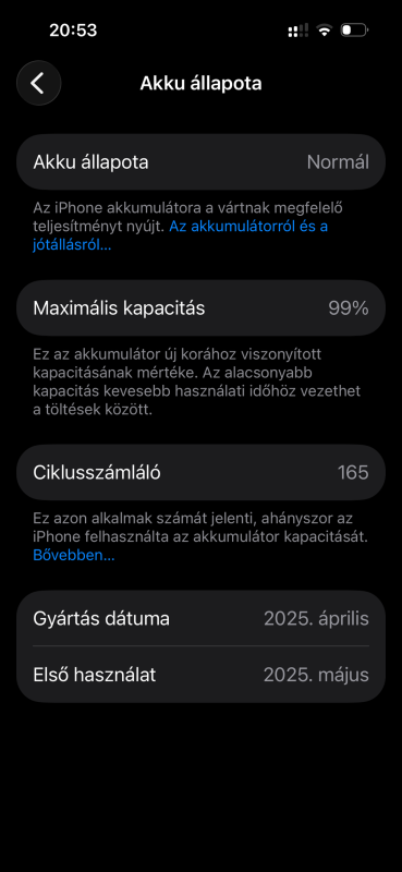 Az ismerősnek most cseréltettem a 12 Pro telefonján gyárit, neki 87% volt de ragaszkodott hozzá a cseréhez. Szerintem ezt a 85%-t sokan beveszik.