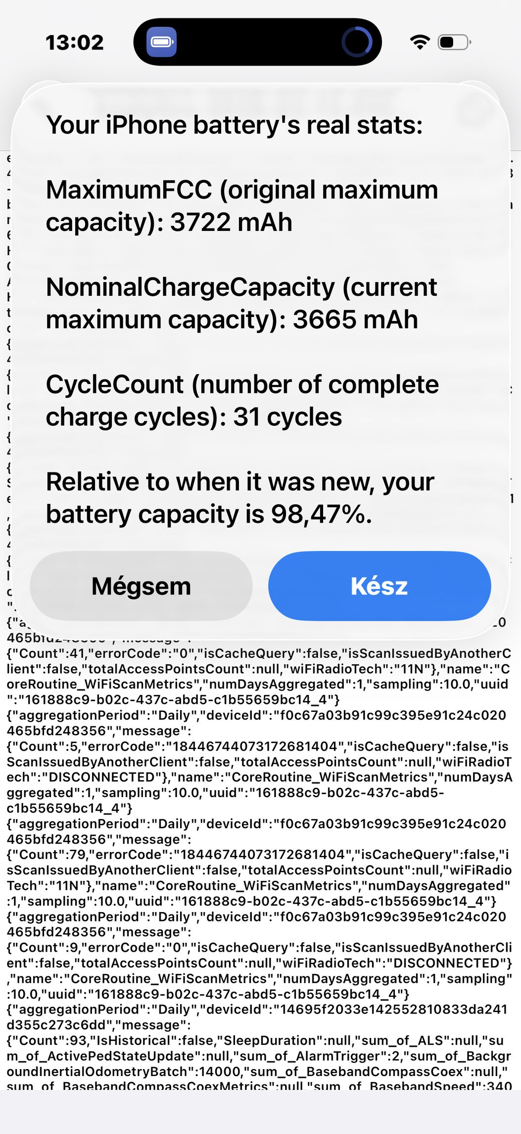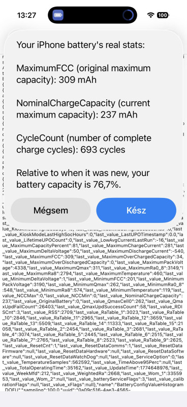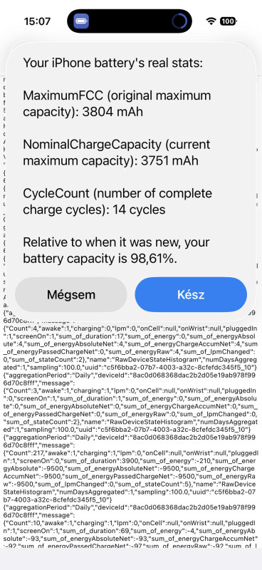Nálam már nulla ciklusnál is 100% alatt volt [kép] , március 13-án pedig 31 ciklus után még tovább esett [kép] . Az viszont továbbra is megvan, hogy elegendő 2 naponta töltenem (január 12 óta használom). A korábbi telefonokhoz képest ezúttal én is az alsó szegmensből kaptam akkumulátort. A 13, 15 mindkettő 1 év után került 100 alá. De ez normális, hogy van egy bizonyos szórás. Mindenestre köszönöm a képet, jó látni, mi a helyzet máshol.