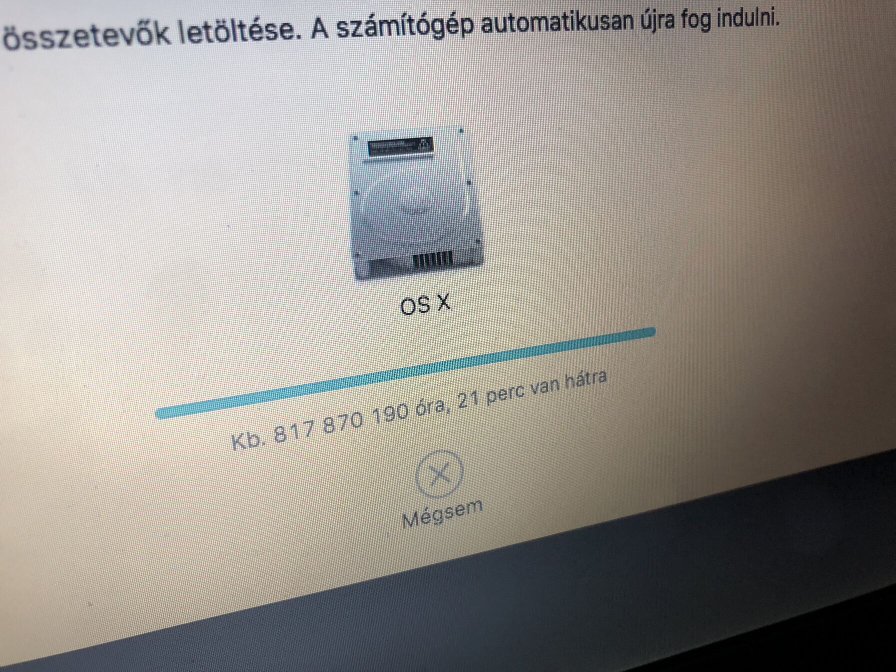 Tizedszer próbálom ezt a nyomorult Catalinát letölteni, de végigmegy a 8.13/8.13 gb-ig és annyi. 15 percig így áll aztán megunom.