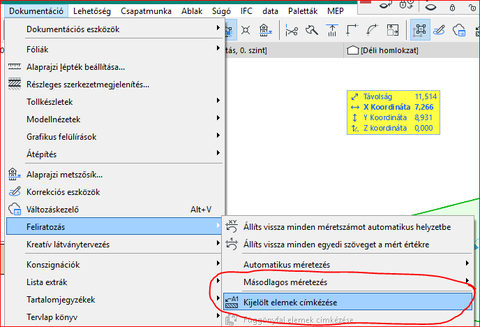 19-től egy elemhez több asszociatív címke is lerakható, sőt az lehet más fólián mint az elem, és szabályozható, hogy lássuk-e, ha az elem nem látszik. Ezért (a pipát helyettesítendő) került be az itt idézett menüpont.