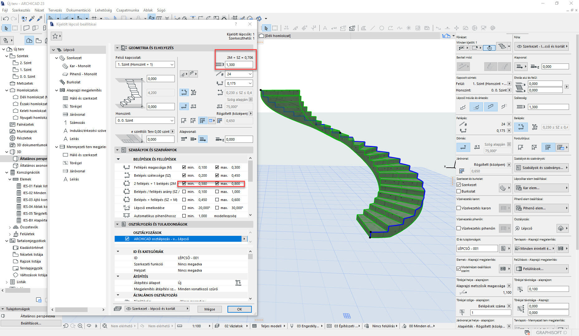 Ugye sok múlik azon hogy nála a 2m+sz érték kicsit másképpen számol, mint ahogyan a tervező "gyalog" végig megy rajta. De lehet ez már a múlt.Mindenesetre hasonló egyedi lépcsőt végül vegyes megoldással raktunk össze: lépcső elem és alakzat együtt. Ha lesz időm ránézek. Melyik verzióval mentetted?