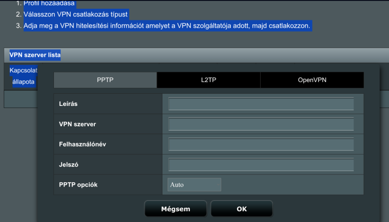 A WAN beállításoknál az ,,Enable VPN + DHCP Connection"-t kapcsold ki, a te szolgáltatódnál az nem kell. Az (is) okozhat kapcsolati problémákat bizonyos szolgáltatóknál.