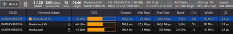 A8:7E:EA:CB:3F:09 Yes Yes -59dBm ax No Yes Yes Yes 2 80M 1201.0M 960.7M 00:00:26 -