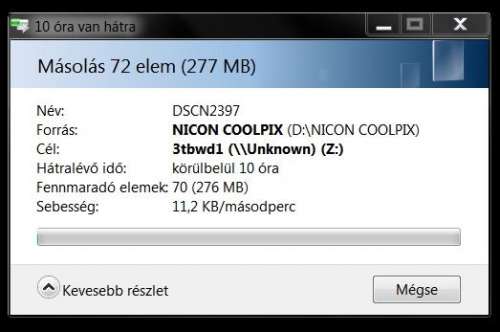 A másolási sebesség a routerhez csatlakoztatott ext3 és NTFS HDD között, PC -ről indítva kriminálisan lassú (2Mb/sec).