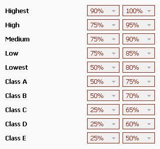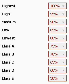 A mért érték 90%-át beírtam a QoS megfelelő rovatába. Le, és feltöltést is. A "Default Class"-t "Lowest"-re állítottam, a "Prioritize small packets with these control flags" részben mind a 4-et bepipáltam.A feltöltési sebességeket így állítottam be: