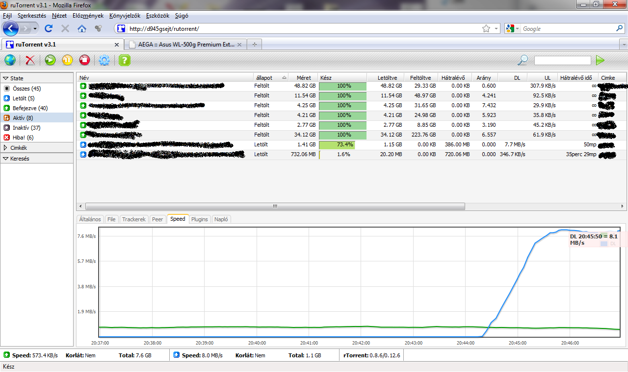 Nálunk az ilyen "sok kapcsolat-os" torrenteket a Párom szedegeti egyelőre a saját gépén, én meg csak néha leszedek 1-1 ISO-t, ami le jön 10-15 perc alatt. A szerver nekem főleg a seed miatt megy ez látszik is a forgalmamon.. (Ne számold össze, nov9.-én pl. 99,35GB feltöltésem volt, míg le csak 2,37GB..) Emellett kényelmesen nézek fullHD-s filmet wifi-n hálózatból.