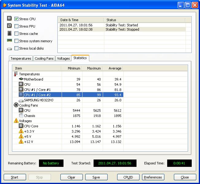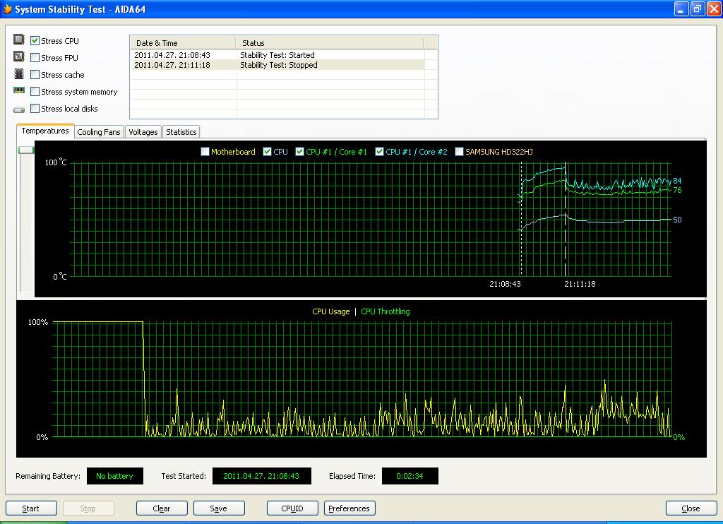 Ja de azt azért feltételezem, hogy az AIDA által írt hőmérsékletről, legalább kézrátétellel, nagyjából megbizonyosodtál! Nehogy csak vaklárma legyen! -