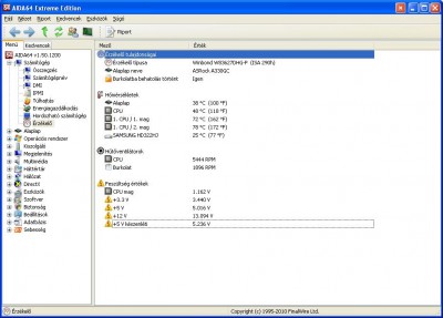 Aida64 szerint alapjáraton az egyik mag 90°C környékére melegszik, a másik 80°C körül van. A házban 55°C van.