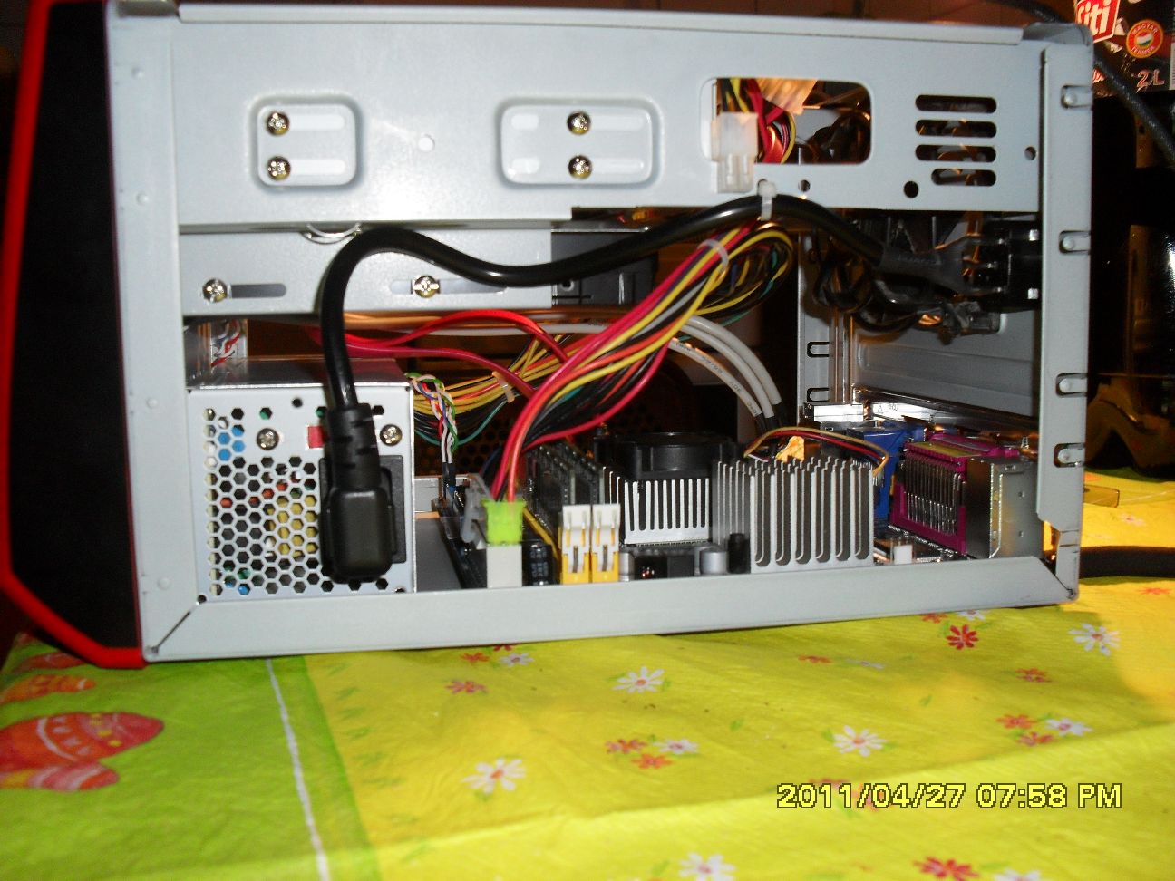 A hozzáadott rendszerhűtő 2 madzagos, nem jelzi vissza a fordulatszámot. A DVD írót nem lehet gombbal becsukni, mert a fedél rányílik a gombra. Mondjuk dizájnra csillagos ötös, a HDD led a bekapcsológomb körüli kék sáv alját festi pirosra, alapvetően elég hely van benn a madzagoknak. -