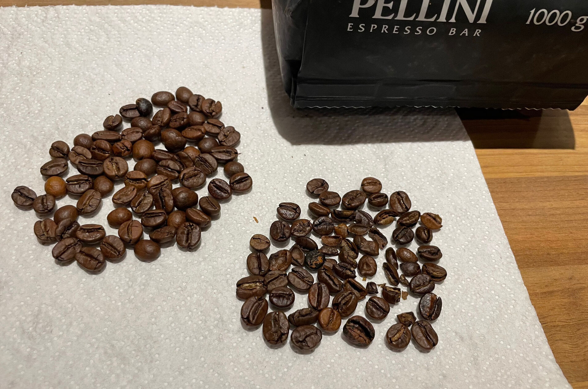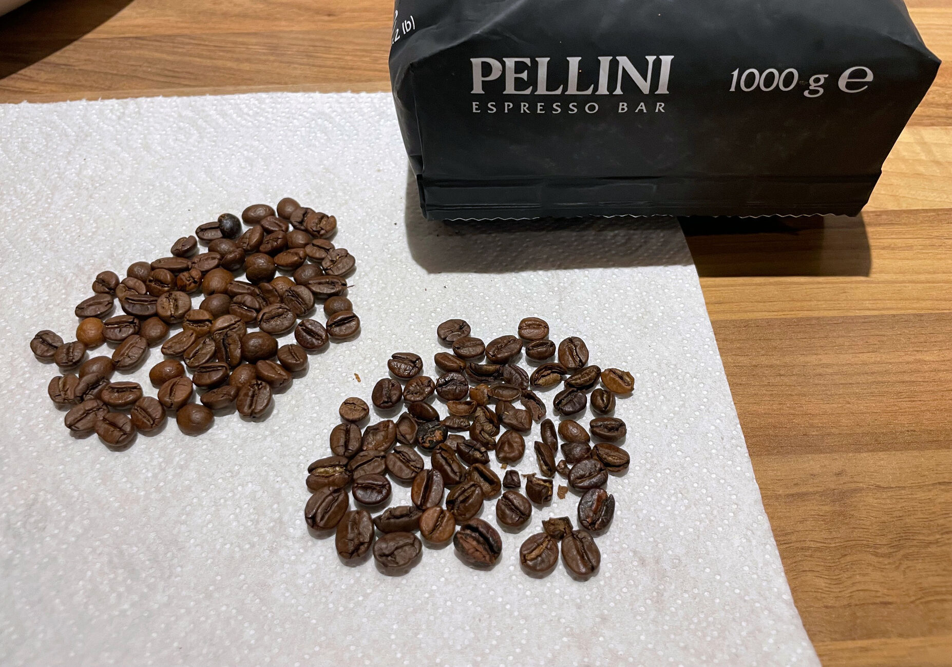 Profibbaktól kérdezném, hogy az alábbi képeken látható kávé szerintetek fake? Egy Pellini N82 Vivace. Volt belőle egy fél kilós kiszerelés, az nagyon finom volt, bejött a családnak. Vettem 1kg-ot máshol (Kávéáruház), de már az első lefőzött kávén éreztem, hogy valami nem stimmel, borzalmas íze volt. Az egyik gyerekem pedig arra panaszkodott, hogy nincs rendes crema, de első körben a gép nem megfelelő beállításaira gyanakodtam. Majd miután ittam még egy kávét, már biztos voltam benne, hogy itt valami tényleg nem kerek, és megnéztem közelebbről a szemeket. Szerintem ennek nem így kéne kinéznie, de sajnos az előző szériából már nem maradt, így nem tudom összehasonlítani. Hátha vannak itt gyakorlott szemek, akik ránézésre látják, mi ezel a helyzet.