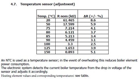 Hőfoktuning történt, a Minuto szervizkönyve szerint ilyen az NTC ellenállása a hőfok függvényében: