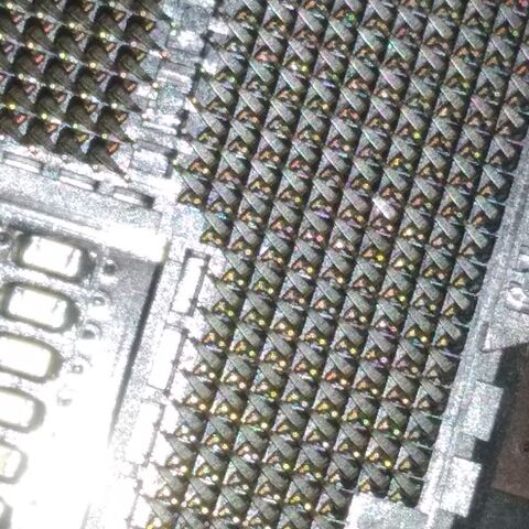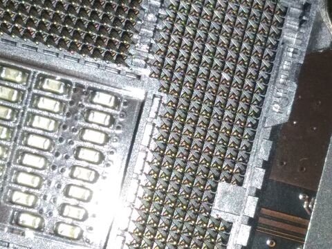 Az biztos, hogy az a láb nem véletlenül tűnik más színűnek, az el volt már korábban hajolva. Ez nem jó jel, de ne kiabáljuk még el a dolgokat, ha szerencséd van, lehet ez még egy hibátlanul működő alaplap is.