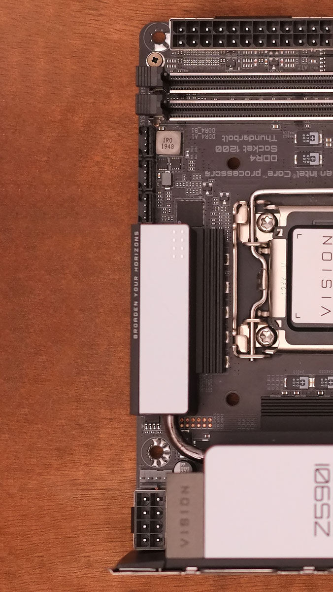 https://www.techporn.ph/review-gigabyte-z590i-vision-d-mini-itx/A tied kb úgy néz ki, mintha rajta hagytak volna gyárilag egy kis plusz "anyagot", és az lenne útban.