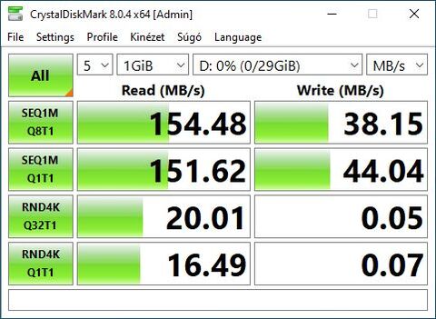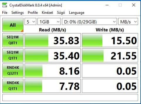Nos, nem egy fénysebesség, a PCIe 1.0 (azt hiszem 1.0) és a SATAII is visszafogja a dolgokat. Mindkét képen ugyanaz a pendrive lett tesztelve. Felsőn USB 2.0-ba dugva, alul pedig az USB 3.0-s bővítőkártya egyik slotjába dugva.