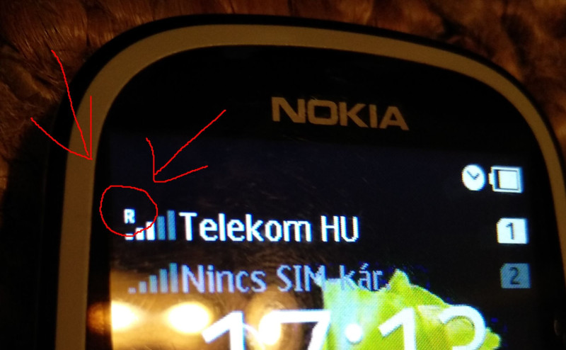 Egy pár éves Nokia 3310-es telefonon tűnt fel pár napja egy "R" betű a jelerősség mellett, ahol ha jól tudom inkább 4G, EDGE, H, vagy hasonló feliratnak kellene lennie...