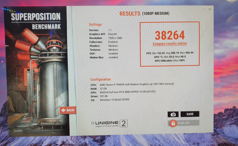 Az eladó nagyon segítőkész volt, beraktuk a gépébe és ott tökéletesen működik. Javaslatára kicseréltem a tápegységet egy 850W-os XPG-re, a monitort és a kártyát displayport kábellel kötöttem össze. Ezt produkálja: