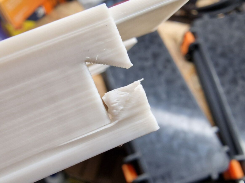 ... egyszerűen akármennyire is próbáltam nagyon óvatosan, "kifordítani" egy fogóval a két kis supportot, felszakadtak a rétegek és elváltak egymástól... Ugyebár, a tárgy két darabból áll és egyenként akkorák, mint maga a munkaterület. Annak formájából adódóan, ahogy körbe-körbe megy a nozzle és építi meg a tálca széleit, meglehetősen "lassú" ugyebár, ... legalábbis én arra tippelek - józan, paraszti ésszel - hogy egyszerűen, mire "megérkezik" az újabb réteg, az másikra, már úgy "kihűl" az előző réteg, hogy "nem olvadnak össze" (de lehet, hogy most teljesen butaságot írtam és ennek így, ilyen formában nincs is jelentősége - nem tudom!