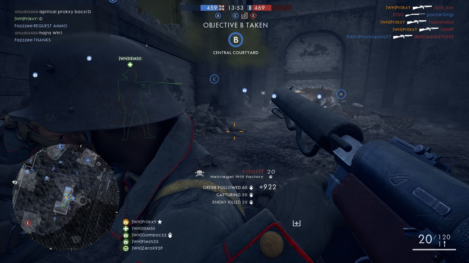 Kis mapokra, pl. Vaux, Amiens, stb, kizárólag M1918 Bar Trench, csípőből, célozva egyaránt, nagyobbakra pedig Mg15 n.a low weight, de igazából a teleszkóposok is nagyon jók, most a 1909-es arany codex-et csinálom és az a nagy optika elég jól adja, szépen ki lehet vele szedni a csipákat is elég messziről, csak ahogy voodoo is írja, le kell támasztani. Közelre viszont cumi, de vmit-vmiért ugye.