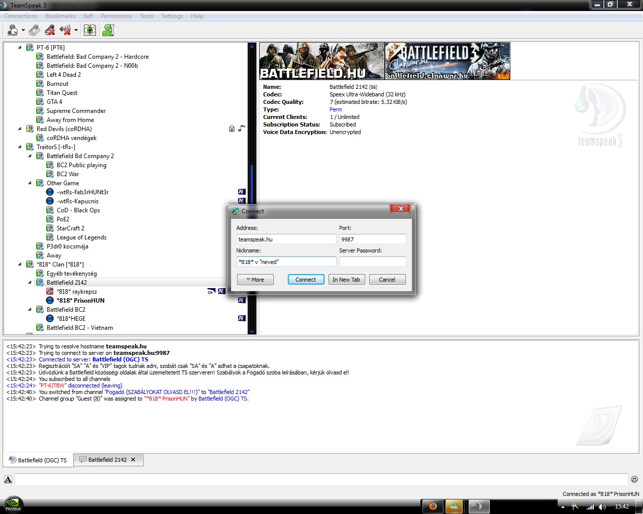 A *818* clan elköltözött egy másik TeamSpeakre így szükséges a regisztráció megismétlése. Ez vonatkozik a *818* tagokra illetve az eddigi és jövőbeli vendégekre is. Anonymus, Terrier, Gelaci, Gerandris, Biggamer, Huma és még bárki aki jönni akar jelentkezzen be az alábbi képen látható adatok alapján: