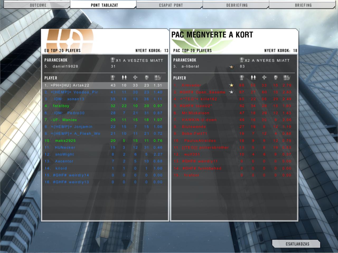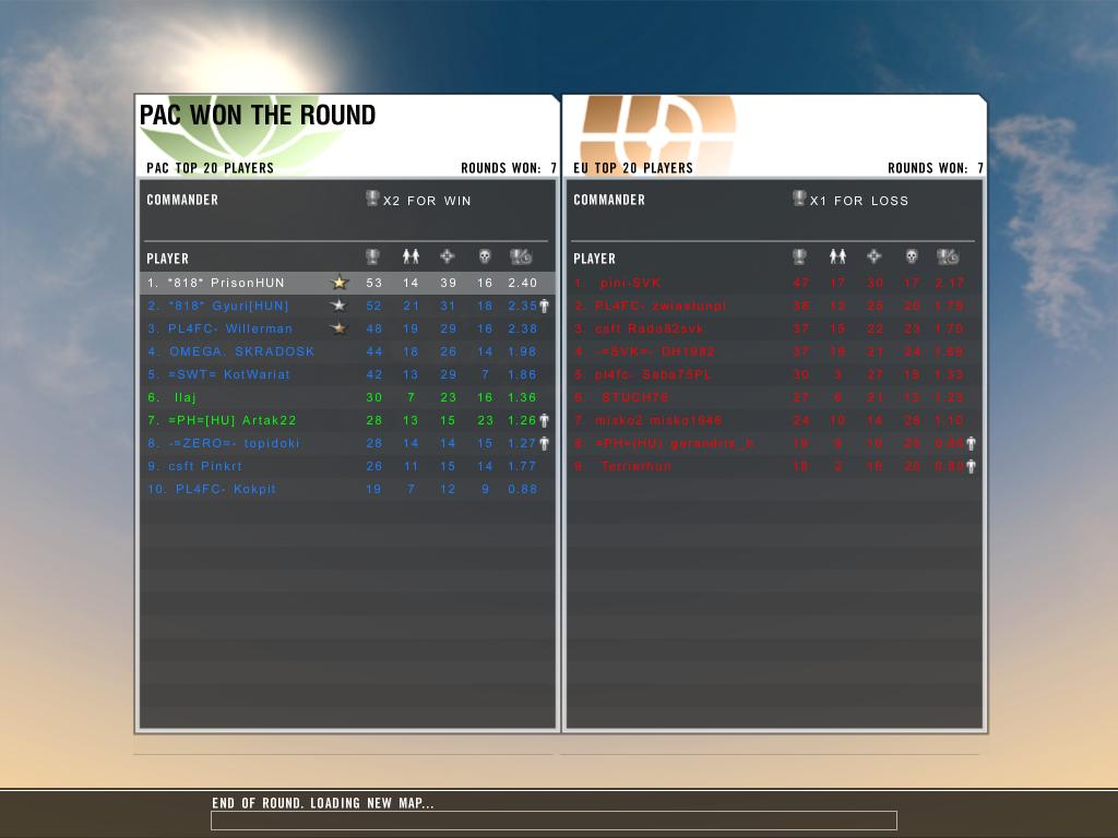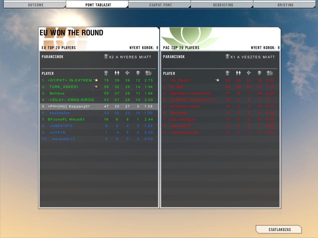 Többet nem pocskondiázok (legalábbis megpróbálom). Ma szépen ment, szereztem két dobogót valahogy és valami kitüntetést. Gerandrissal karöltve daráltuk be az ellenséget