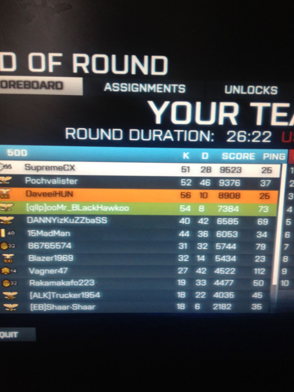 Ha megnézitek ezt a képet (ami nem sikerült vmi jól) az látszik hogy kb. egyedül hoztam a meccset. A csapattárasaim nem sokat segítettek kivéve az elsőlt aki önfeláldozó k/d -s.
