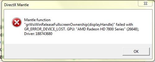 Az amd gaming evolved app felvan rakva? Ha igen és nem használod akkor töröld, talán nem tudom de lehet blokkol a tűzfalad, vagy vírusírtó szünet egy próba erejére. Ha van integrált vga azt tiltsd, vagy ha crosfire van próbáld csak egy vga val indítani ha lehet olyat. Vagy txt be mentsd le hogy mantleval indítod, vagy dx11 be, azt nem tudom hogy kell de volt róla szó már itt. Ezeken kívűl én sem tudnék mást próbálni.