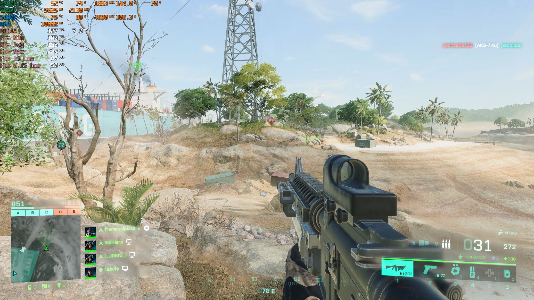 Csináltam 2 mérést SAM OFF/ON 128 fős conquest Stranded pálya.