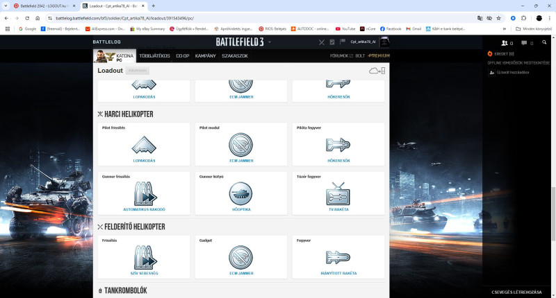 na nekifutok utoljára hátha?! a pilota választahat 2 fegyver közül is menet közben míg a gunner csak megymagköpködője van ergó hasztalan, már tettem be képet , HOGY a bf 3 ban a gunner tv raksi gépágyú és gyortöltés (ezeket lehetett variálni ) a pilóta fler bemérős raksi és stel (ezt is lehetett variálni) , DE CSAK EGY FEGYVER VOLT A KEZÉBEN ,gondolom mint élőben ,ha valaki már látott élőben atackhelit. itt én ezt le is zárom mert ha ezt sem érted hiába írnék bármit , te csak nem akarod érteni és a magad igazát hajszolni (amit mellesleg én le is ...ok) pont! peace, de inkább ne válaszolj!pls