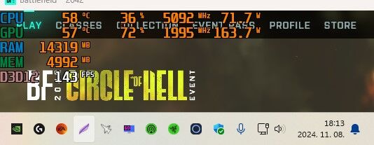 Egyébként, ha nagyon adatok kellenek,hogy hogy megy a játék akkor még mindig ott van a saját perfoverlay.drawgraph vagy valami hasonló parancs, látod,hogy hogy megy a játék. Háttérbe meg megy a HW info a többihez ami kell, esetleg Nvidia experience ki van írva a FPS, mi hiányzik még?