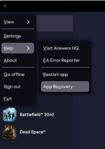 Esetleg még ez az app recovery? Ha az EA app vacakol.