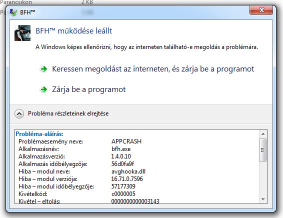A hibát okozó alkalmazás elérési útja: C:\Program Files (x86)\Origin Games\BFH\bfh.exe