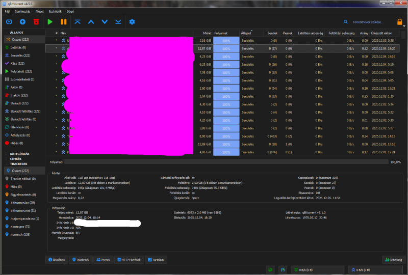 Letöltés után átneveztem a letöltött torrentek mappáit. (A fájlokat természetesen nem, csak a mappákat!) A kliensben is átneveztem, és a letöltési helyen is, mindkét helyen ugyanaz a név. Miért kapom ezt? [kép] Jobb klikk a torrentre, Hely megadása, megadom a mappa helyét, de nem történik semmi. Kényszerített újrandításnál nem leellenőrzés történik, hanem a régi néven létrehoz egy új mappát, és újrakezdi a letöltést. Ugyanakkor NEM MINDNÉL van ez, némelyik tökéletesen seedben áll.