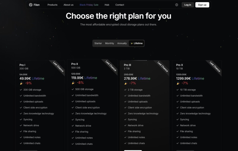Én az előző Black Friday alkalmával vettem 2TB-s lifetime csomagot náluk, másodlagos off-site backupnak nekem bevált, de ki kell emelnem: csak ezért a kedvezményes árért. A le-/feltöltési sebességek nálam 10-15 MB/s-nél kimaxolódnak, mivel a titkosítás lokálisan zajlik, ezért az eszközt, amiről le-/feltöltesz rendesen megizzasztja. Az Android alkalmazás eléggé fapados, nálam a kamera Backup sosem működött, mert nem tudod megadni, melyik mappát figyelje. Jobbnak szerintem a Proton Drive sokkal jobb, csak ott nincs lifetime csomag, úgyhogy nem tudsz jól bevásárolni tárhelyből.