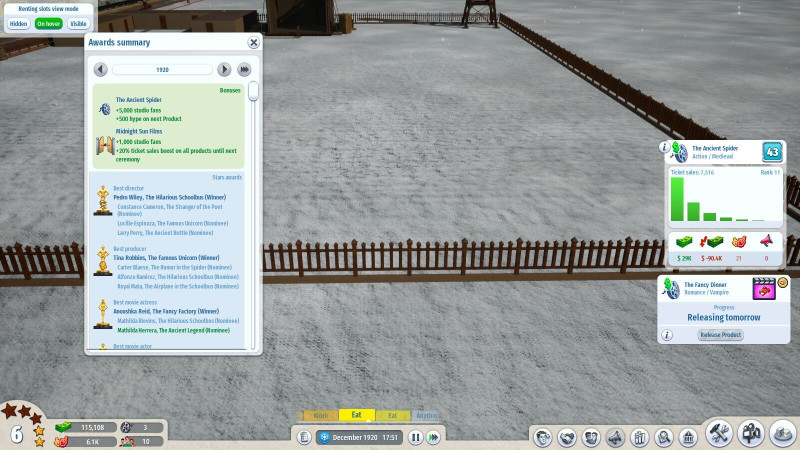 Bankruptcy Mechanic: Rival studios can go bankrupt, pausing operations for a year before returning.