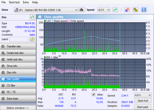 Az írás Pioneer BDR-S08XLT íróval és 4X sebességgel, ImgBurn-nel történt, szerintem ennél tökéletesebb BD50-es írás/lemez nem nagyon létezik.