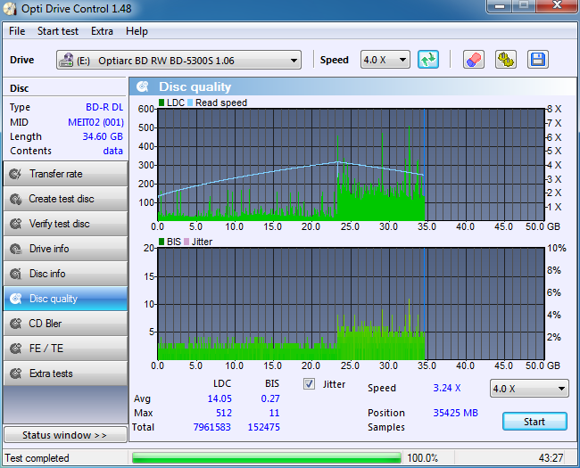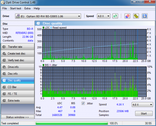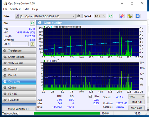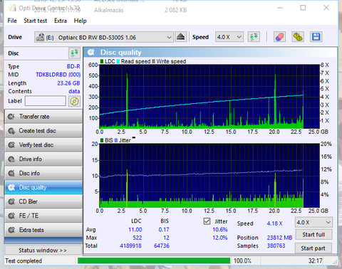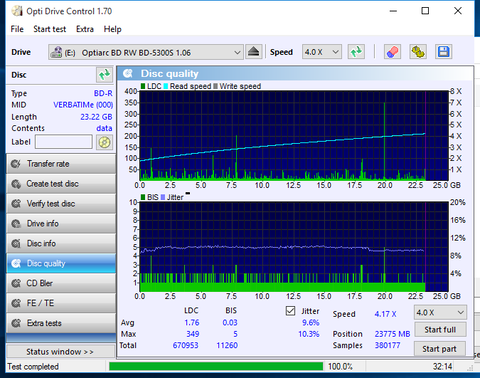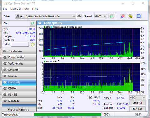 Ezek már jobbak de itt is van egy értékelhetetlen. Nekem valahogy sosem sikerült még megírni úgy igazán tökéletesre BD-R DL lemezt. Na a lényeg, hogy a fenti JVC lemezek sem biztos, hogy azért lettek olyan rosszak mert Optiarc-al lettek írva.