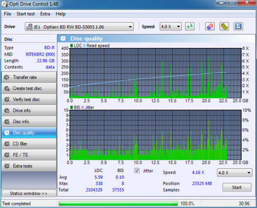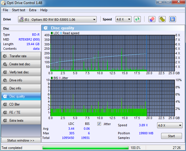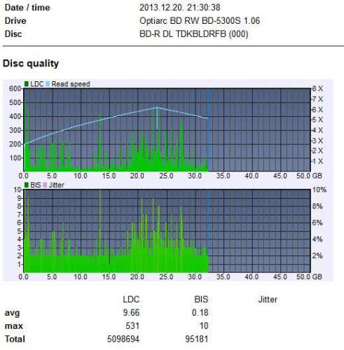 A többi JVC lemez is kb. ilyen eredménnyel zárult.Szintén az Optiarc így írta a TDK BD-R DL-t (jé akkor egyet sem rontott)