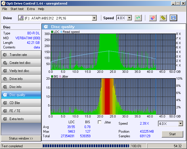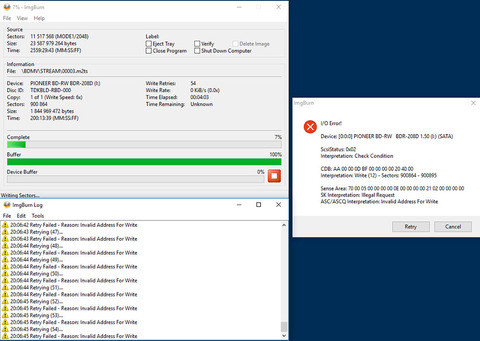 [Verbatim DL 50 GB]ImgBurn, Pioneer 208D, 2X írva