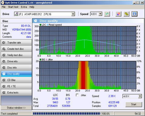 Érdekes, hogy „elméletileg” ugyanaz a lemez mint a Verbatim de szemmel láthatóan elmarad tőle ha az írás minőségét nézzük.PIONEER BD-RW BDR-208D 1.40